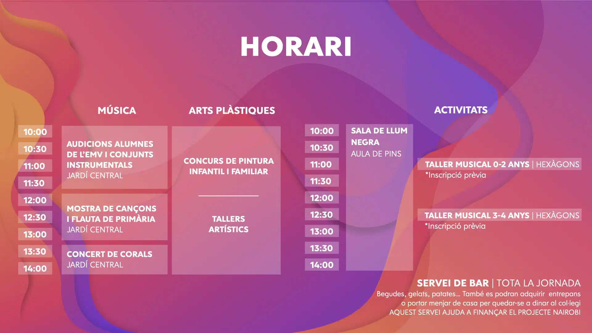*Aquest servei està atès per alumnes de Batxillerat i tots els beneficis es destinen íntegrament al projecte educatiu i assistencial que els alumnes desenvolupen a Nairobi.